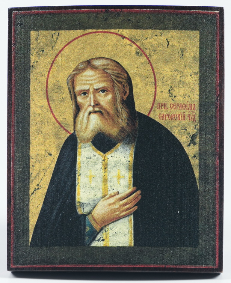 Икона на дереве 9х11 лак Серафим Саровский