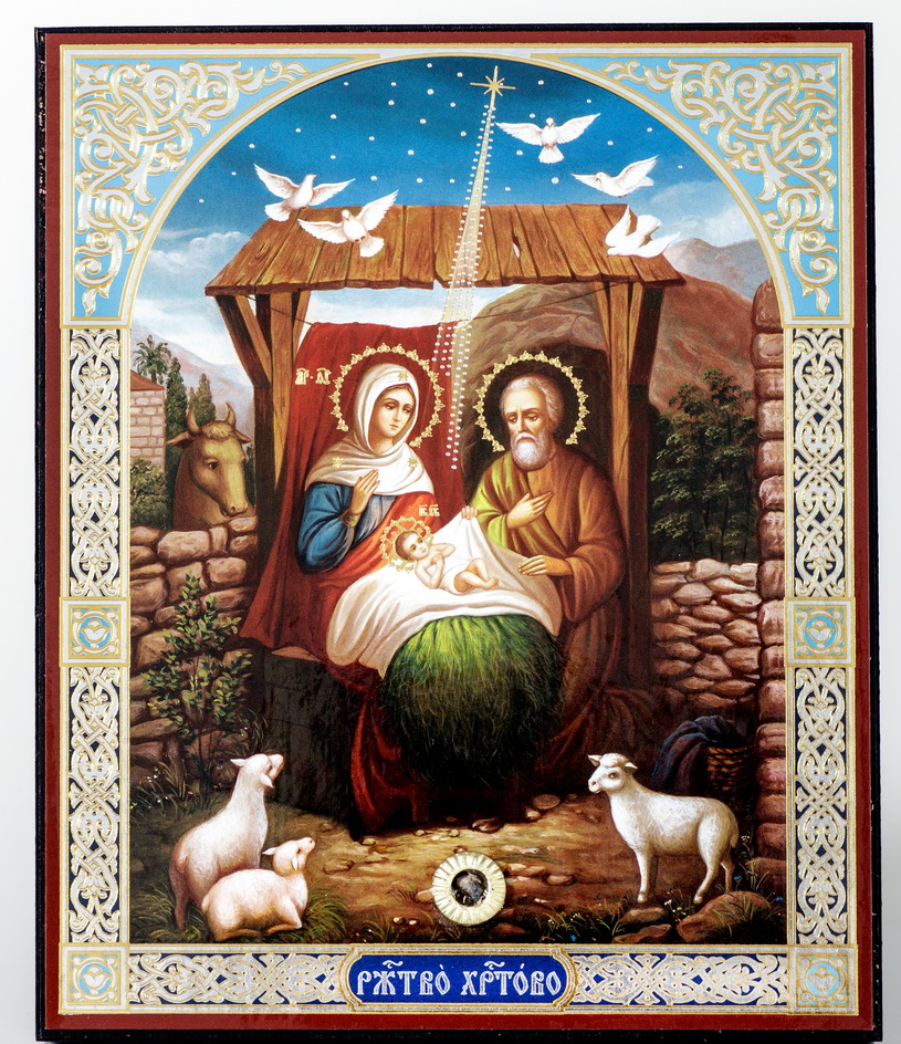 Икона на деревянном планшете 11х13 двойное тиснение (18мм), БЗГ, упаковка Рождество Христово 35