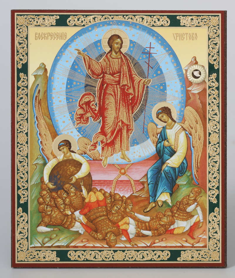 Икона на деревянном планшете 11х13 двойное тиснение (18мм), БЗГ, упаковка Воскресение Христово 63
