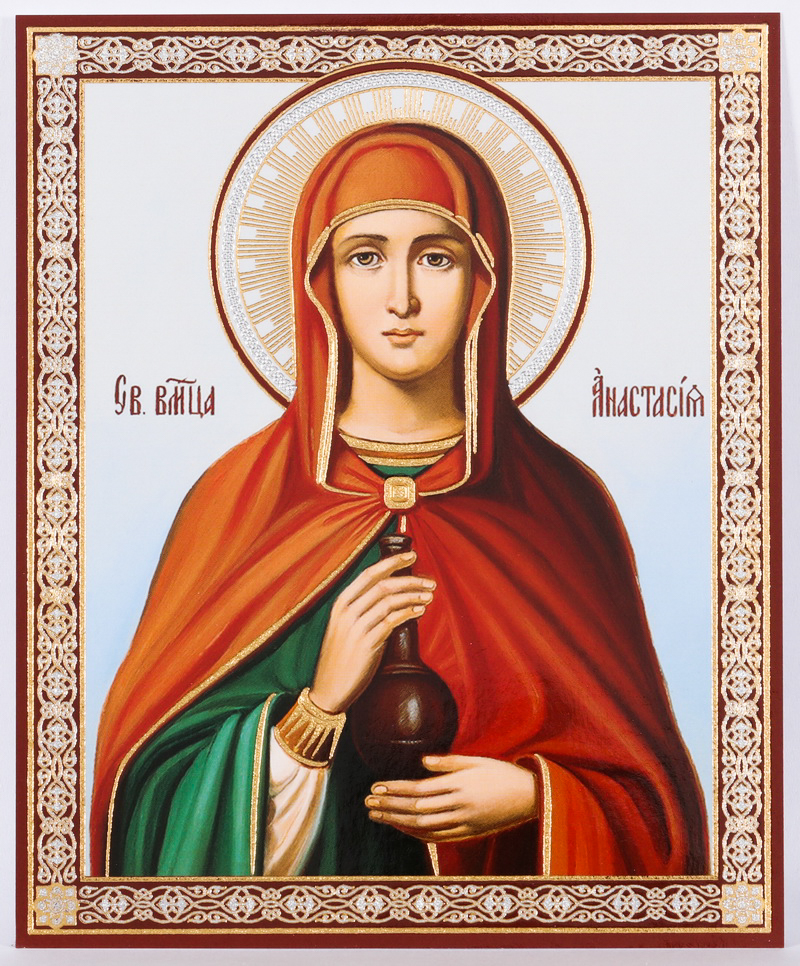 Икона на деревянном планшете 11х13 двойное тиснение Анастасия Узорешительница, св., вмц. (2)