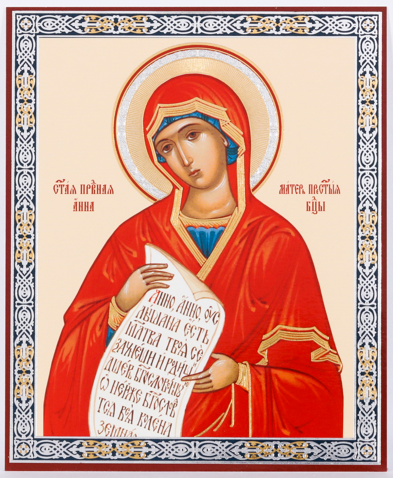 Икона на деревянном планшете 11х13 двойное тиснение Анна Праведная, мать Пресвятой Богородицы (2)