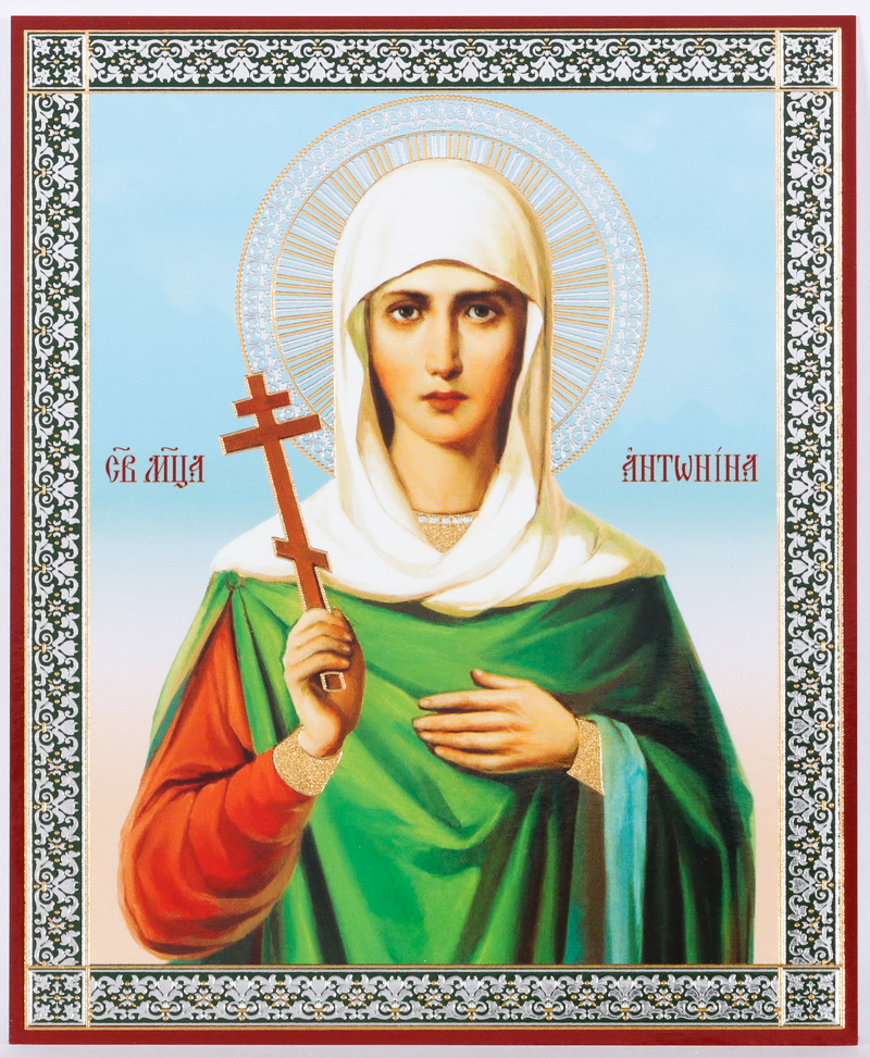 Икона на деревянном планшете 11х13 двойное тиснение Антонина св. мц. Кродамнская, дева (2)