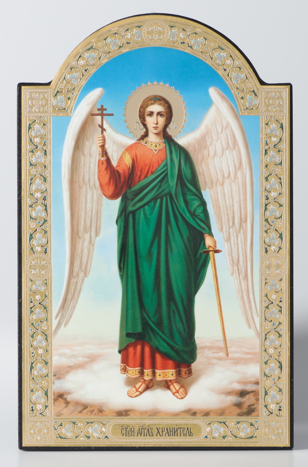 Икона на деревянном планшете 11х13 двойное тиснение, арочная Ангел-Хранитель (ростовой) №2