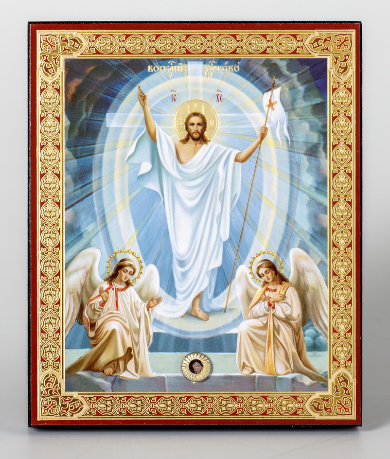 Икона на деревянном планшете 11х13 двойное тиснение, БЗГ Воскресение Христово 25