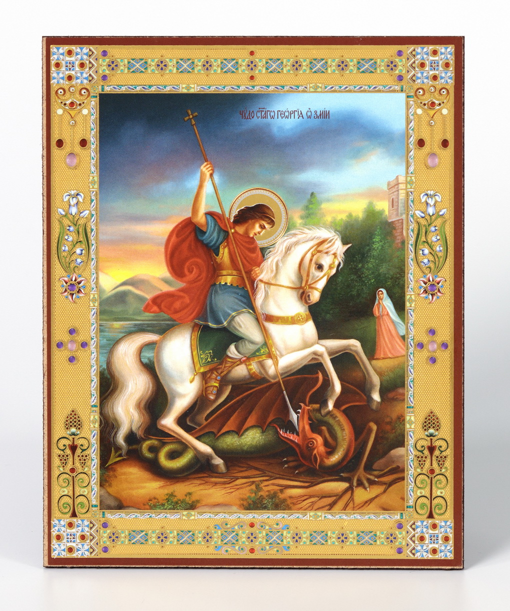 Икона на деревянном планшете 11х13 двойное тиснение Чудо Георгия о змие 8