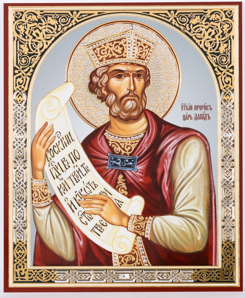 Икона на деревянном планшете 11х13 двойное тиснение Давид 2