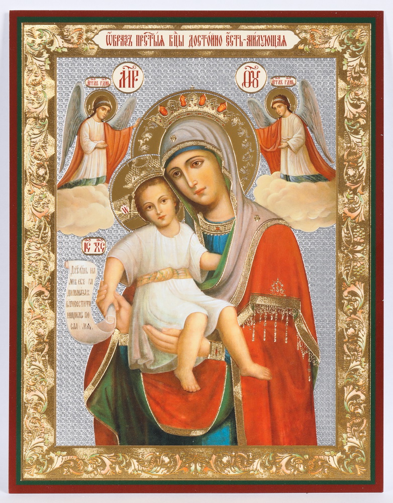 Икона на деревянном планшете 11х13 двойное тиснение Достойно Есть