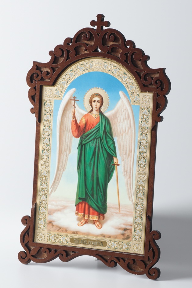 Икона на деревянном планшете 11х13 двойное тиснение, фигурная, арочная Ангел-Хранитель (ростовой) №2