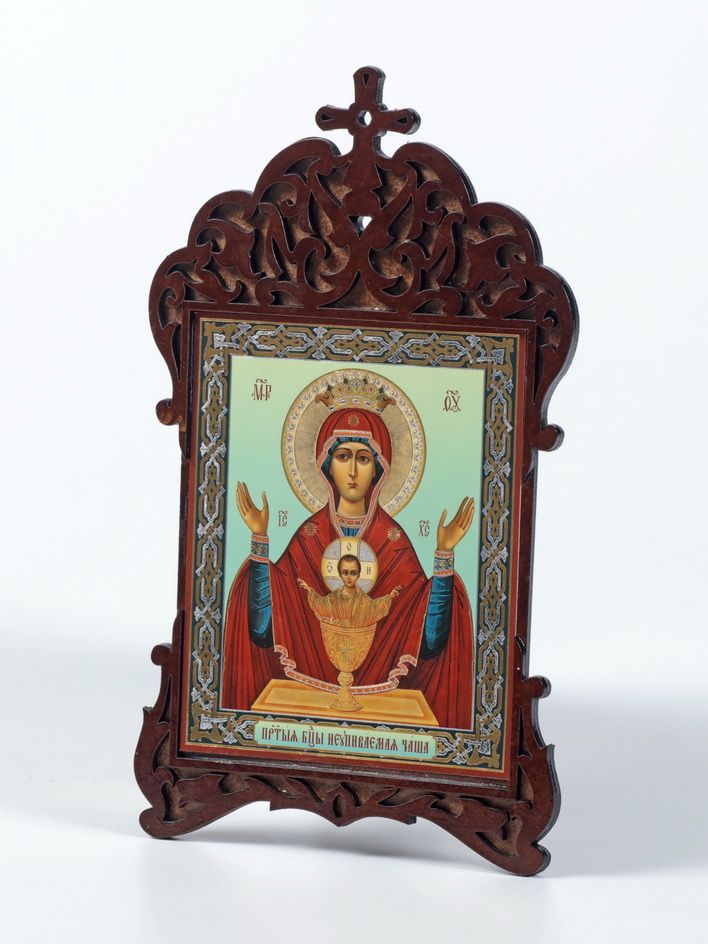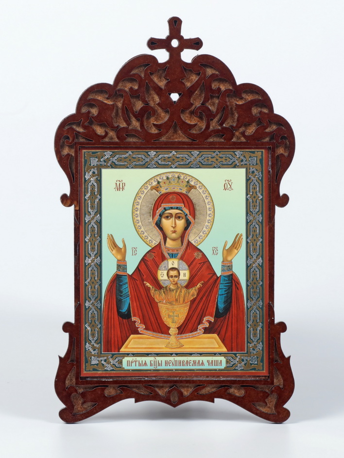 Икона на деревянном планшете 11х13 двойное тиснение, фигурная Неупиваемая Чаша