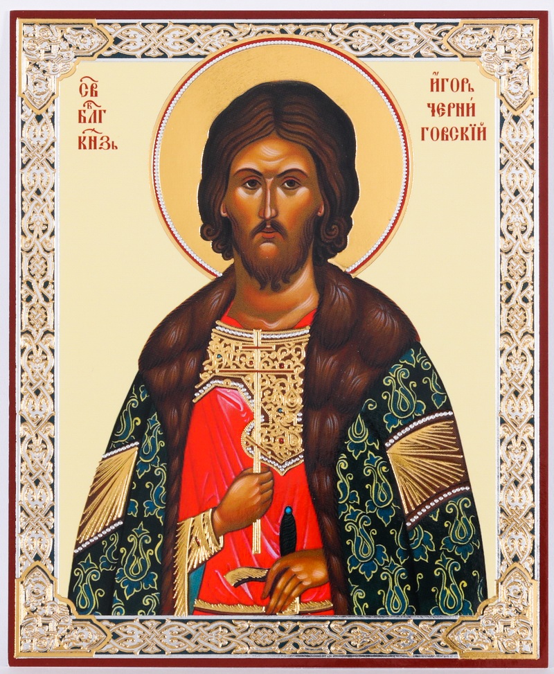 Икона на деревянном планшете 11х13 двойное тиснение Игорь, князь Черниговский 2