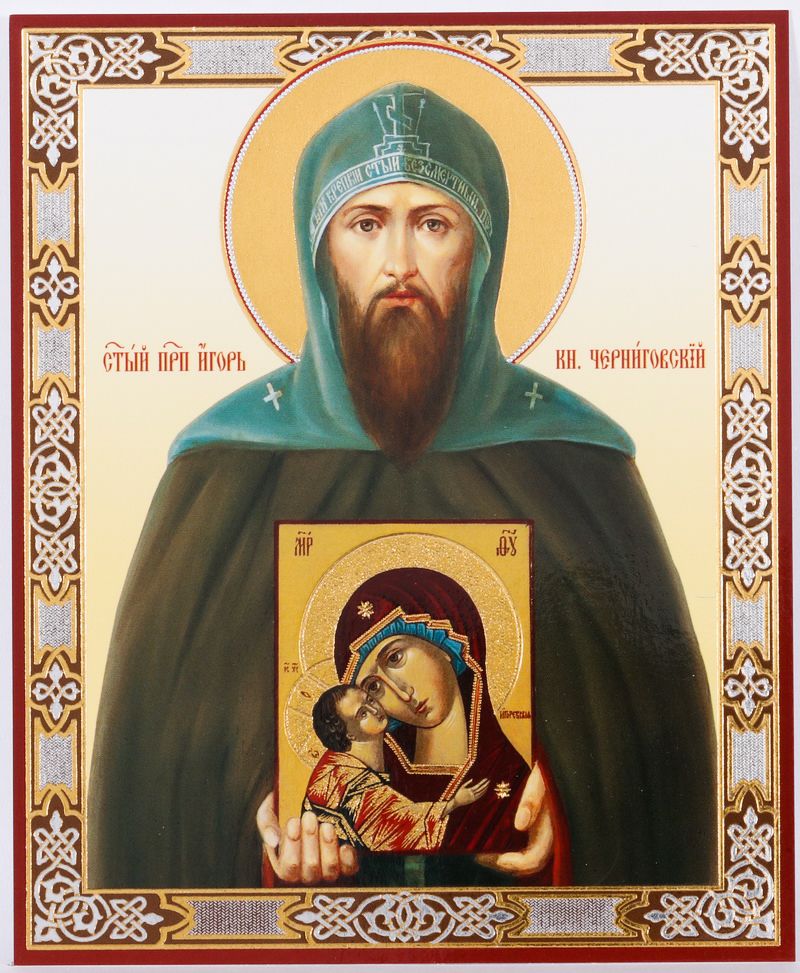 Икона на деревянном планшете 11х13 двойное тиснение Игорь, князь Черниговский 3
