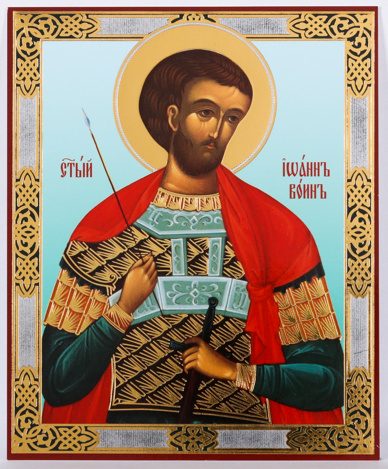 Икона на деревянном планшете 11х13 двойное тиснение Иоанн Воин 2