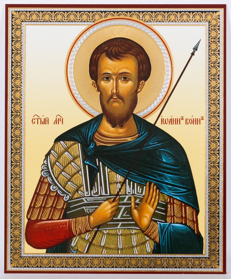 Икона на деревянном планшете 11х13 двойное тиснение Иоанн Воин 3