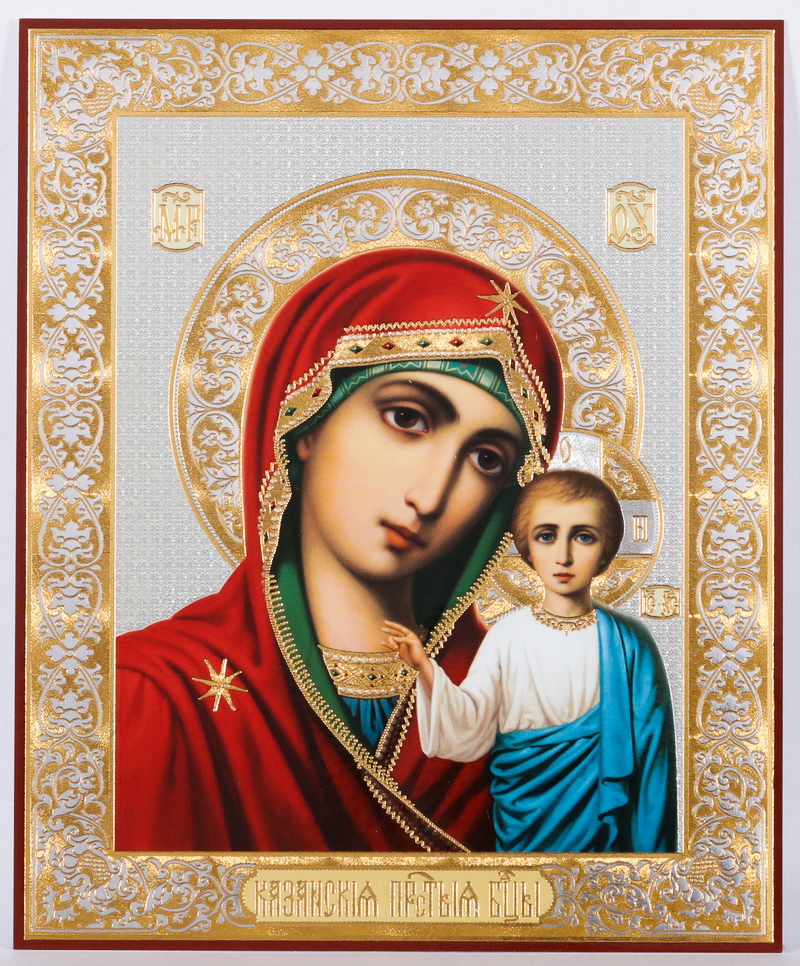 Икона на деревянном планшете 11х13 двойное тиснение Казанская БМ 1