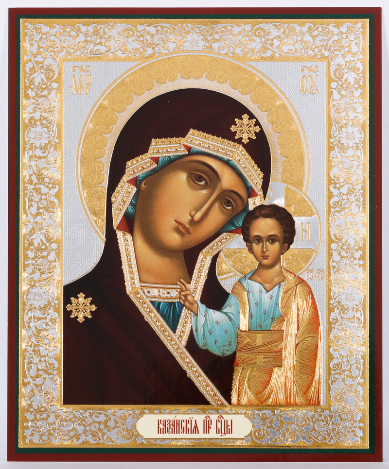 Икона на деревянном планшете 11х13 двойное тиснение Казанская БМ 2