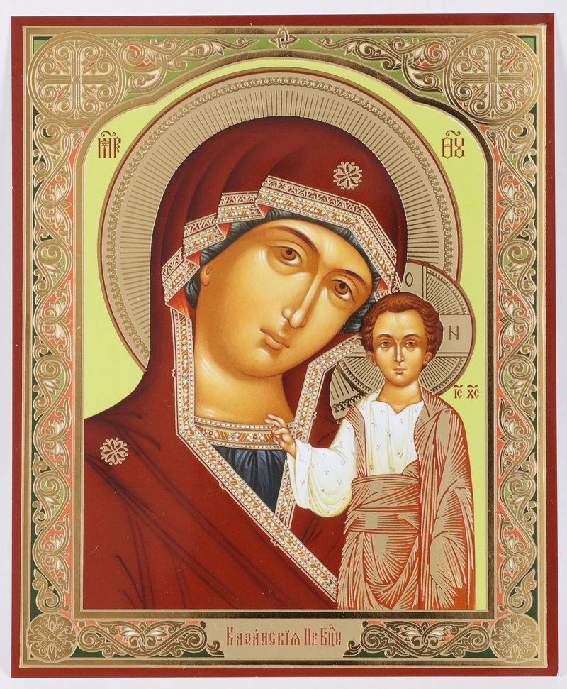 Икона на деревянном планшете 11х13 двойное тиснение Казанская БМ 28