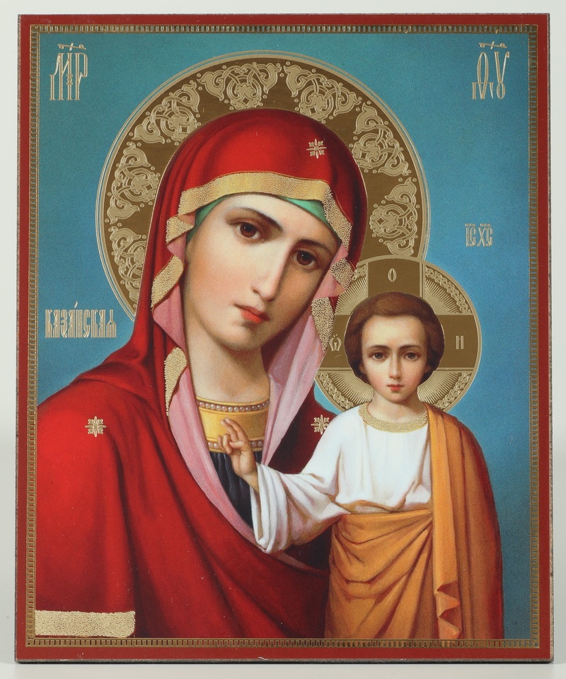 Икона на деревянном планшете 11х13 двойное тиснение Казанская БМ 34