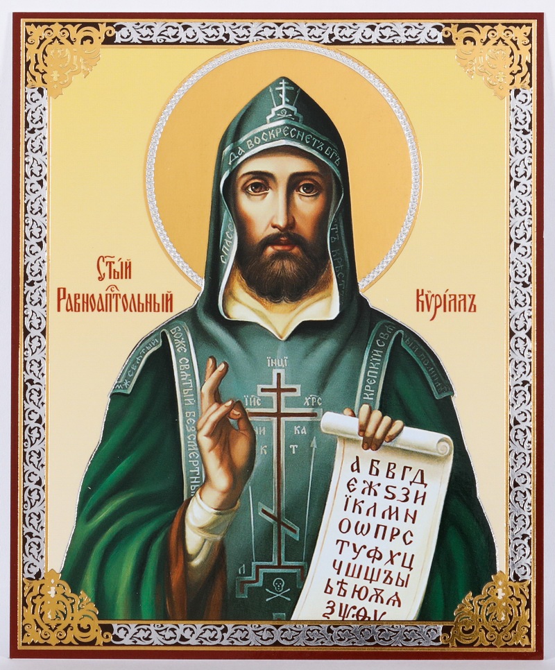 Икона на деревянном планшете 11х13 двойное тиснение Кирилл