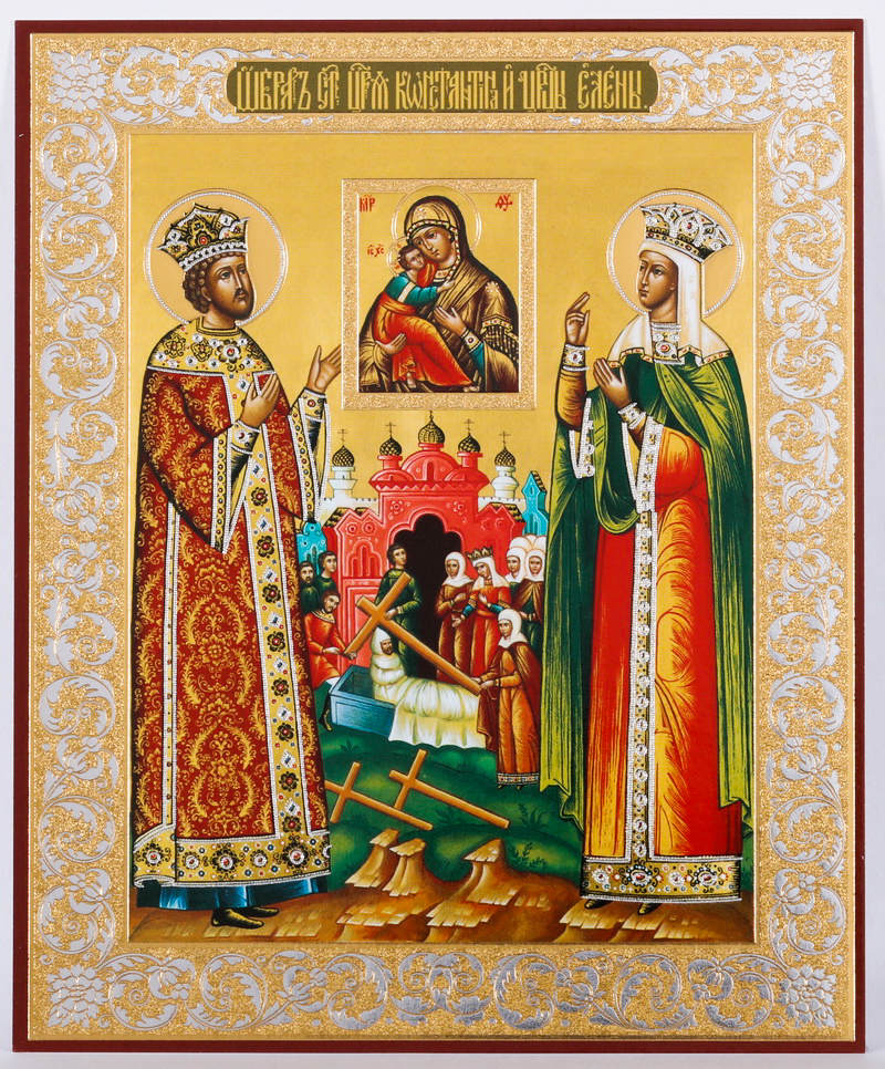 Икона на деревянном планшете 11х13 двойное тиснение Константин и Елена 2