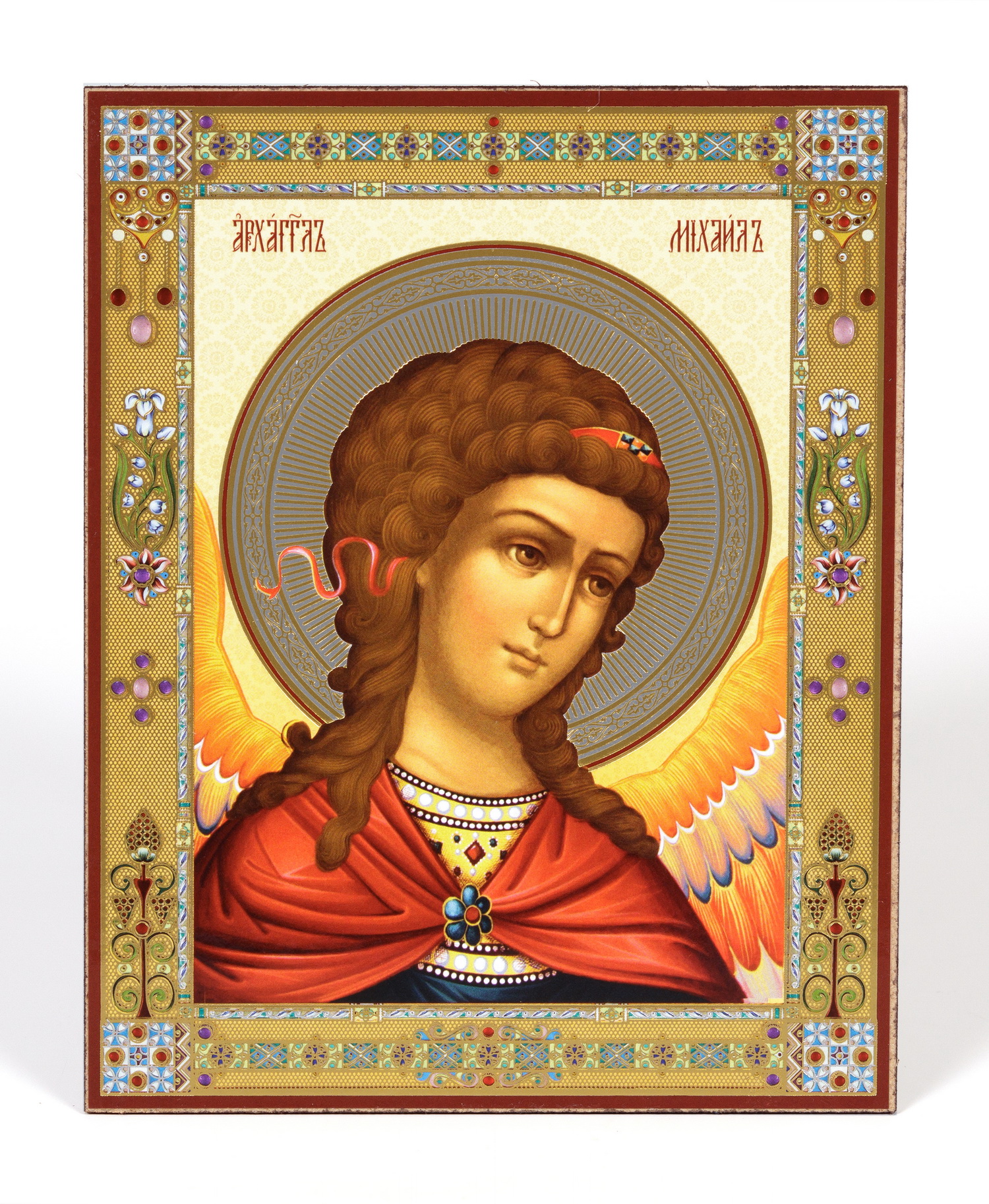 Икона на деревянном планшете 11х13 двойное тиснение Михаил Архангел (оплечный)