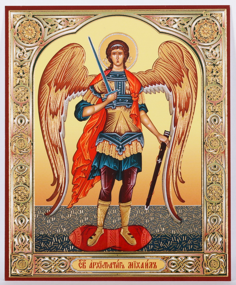 Икона на деревянном планшете 11х13 двойное тиснение Михаил Архангел (ростовой) 2