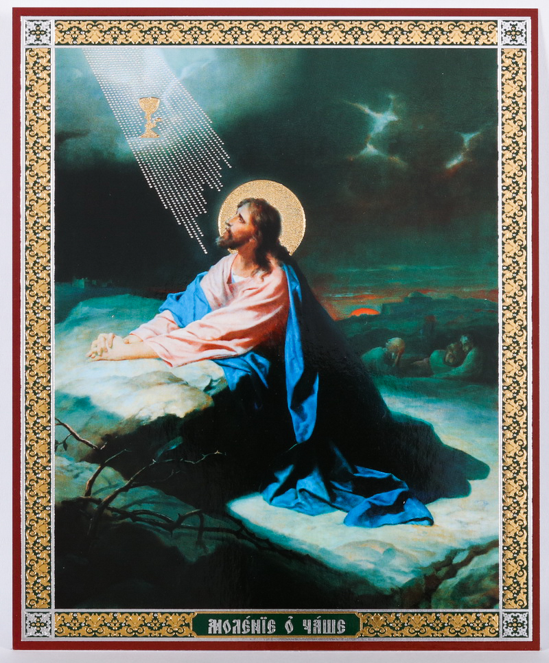 Икона на деревянном планшете 11х13 двойное тиснение Моление о Чаше 2