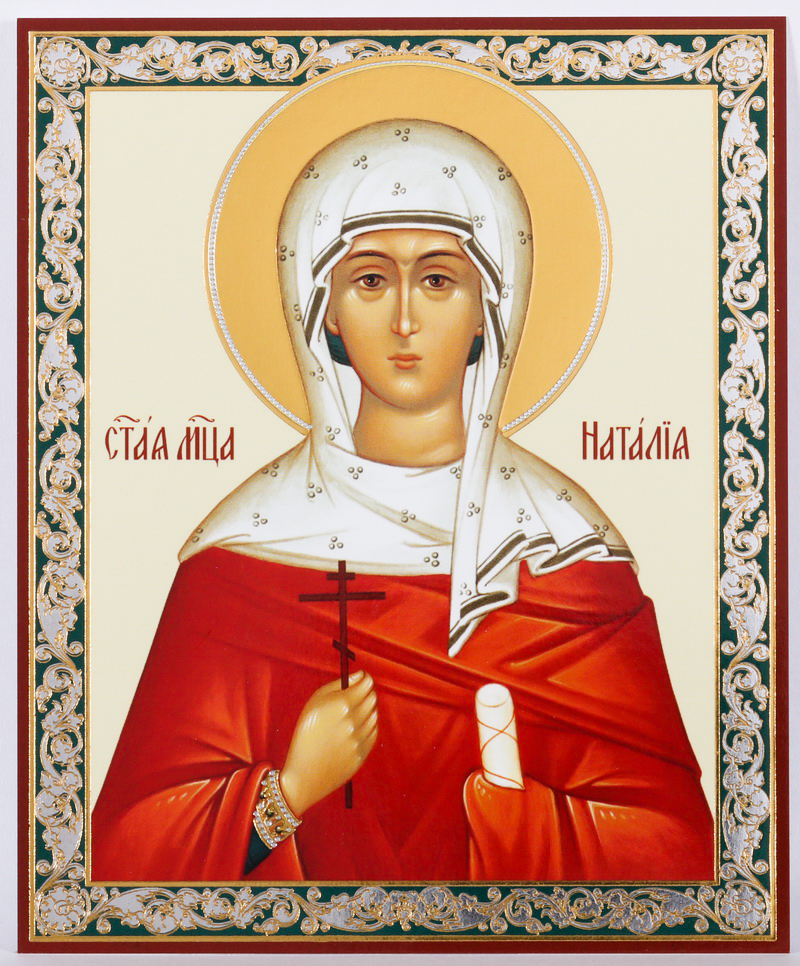 Икона на деревянном планшете 11х13 двойное тиснение Наталия 4