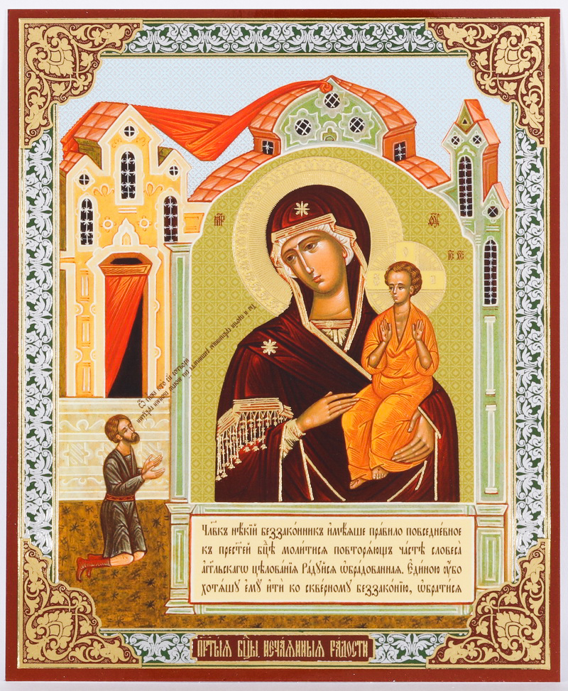 Икона на деревянном планшете 11х13 двойное тиснение Нечаянная Радость 2
