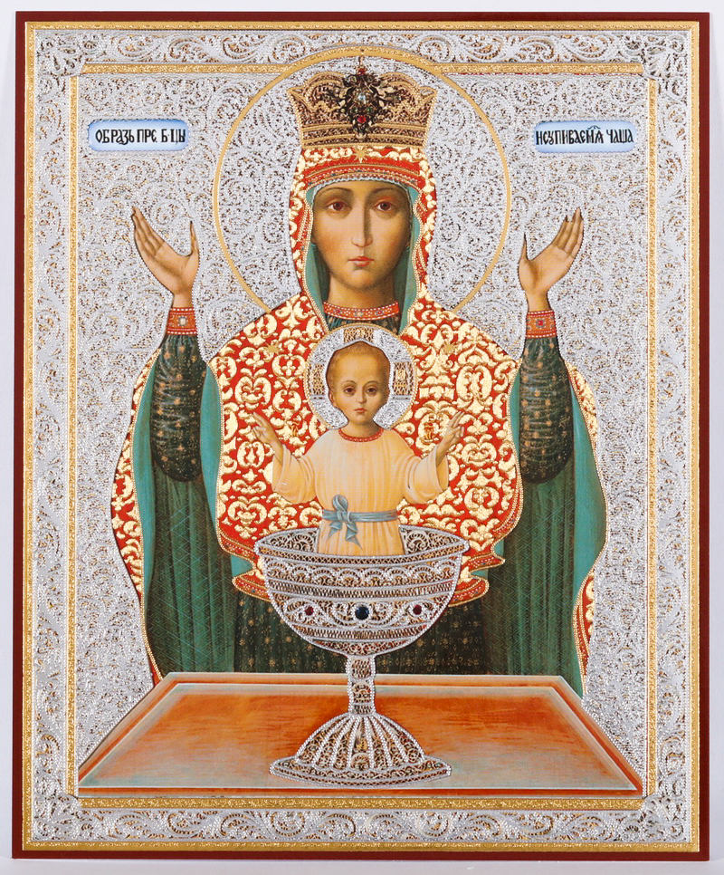 Икона на деревянном планшете 11х13 двойное тиснение Неупиваемая Чаша 3