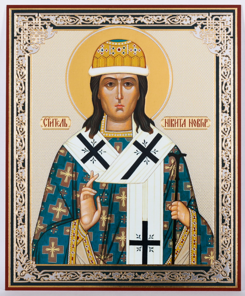 Икона на деревянном планшете 11х13 двойное тиснение Никита Новгородский 2
