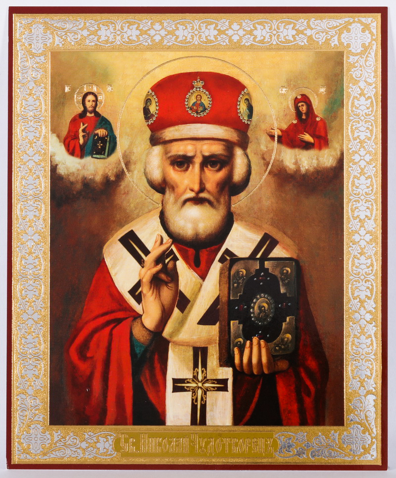 Икона на деревянном планшете 11х13 двойное тиснение Николай Чудотворец 16