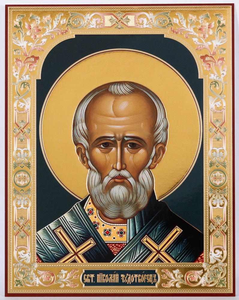 Икона на деревянном планшете 11х13 двойное тиснение Николай Чудотворец 29