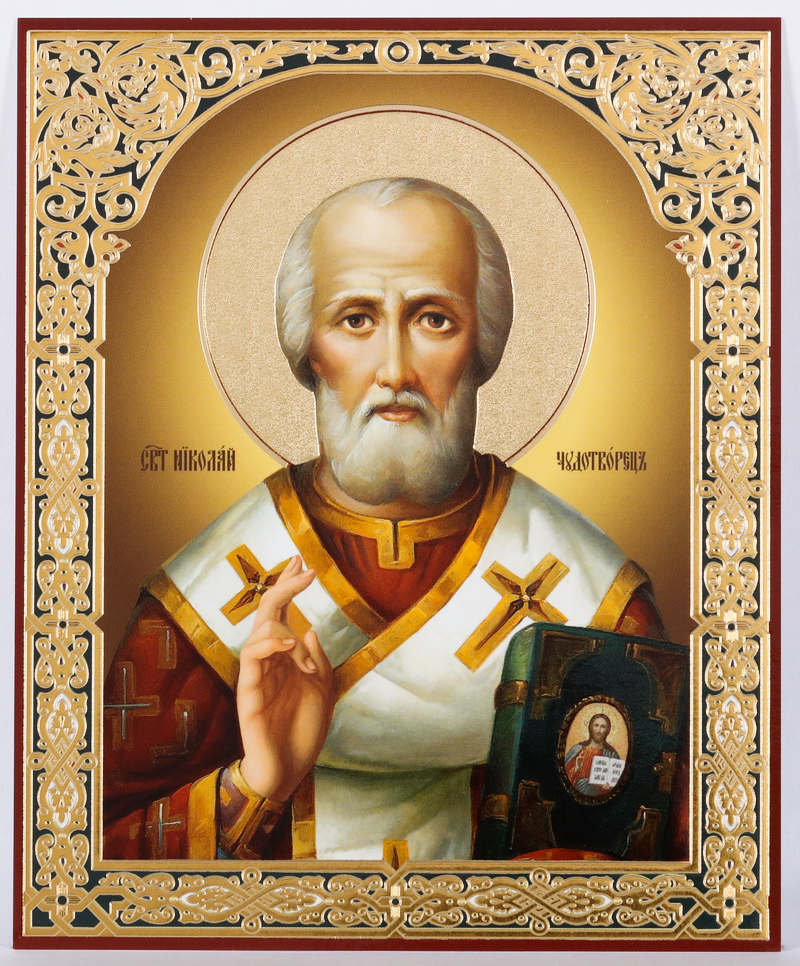 Икона на деревянном планшете 11х13 двойное тиснение Николай Чудотворец 30