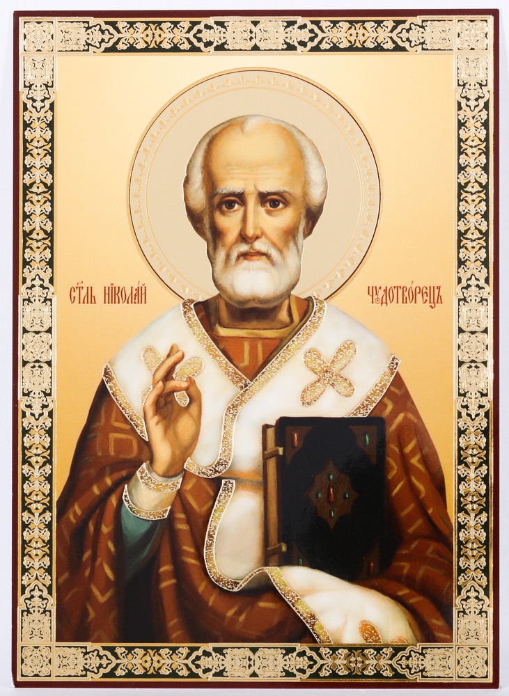 Икона на деревянном планшете 11х13 двойное тиснение Николай Чудотворец 33
