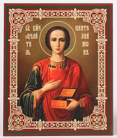 Икона на деревянном планшете 11х13 двойное тиснение Пантелеимон 4