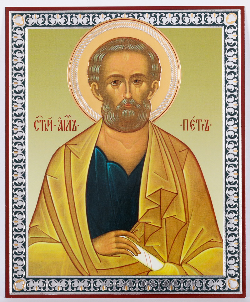 Икона на деревянном планшете 11х13 двойное тиснение Петр, апостол