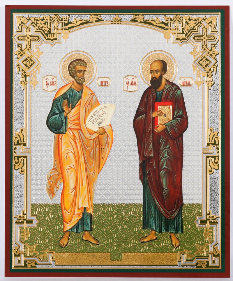 Икона на деревянном планшете 11х13 двойное тиснение Петр Павел