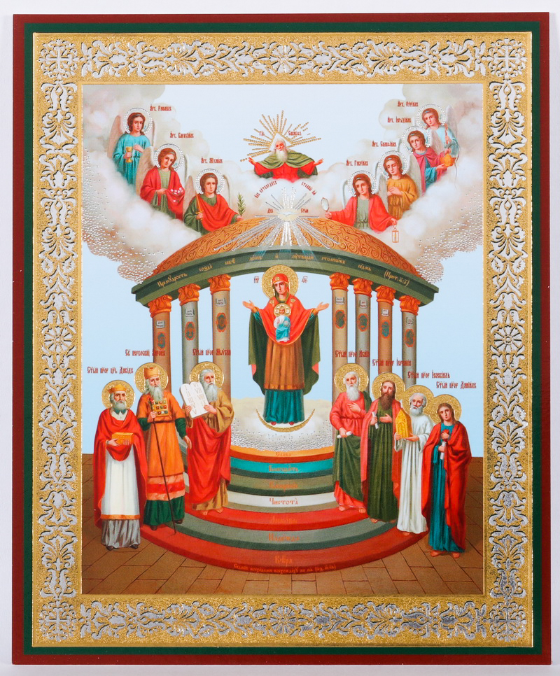 Икона на деревянном планшете 11х13 двойное тиснение Семистолпная БМ