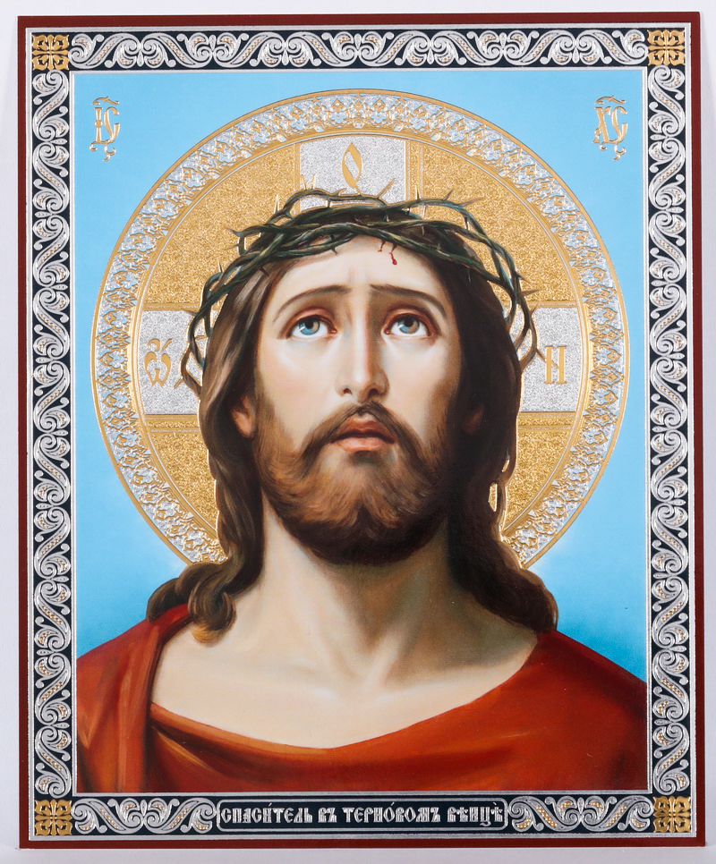 Икона на деревянном планшете 11х13 двойное тиснение Спас в терновом венце №3