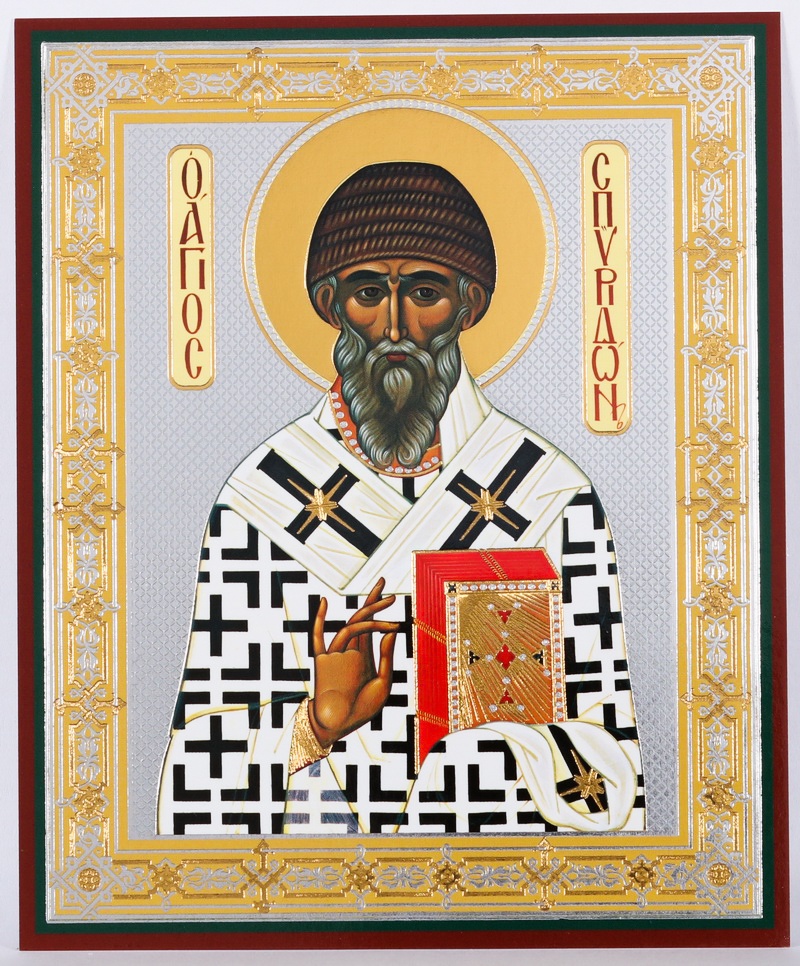 Икона на деревянном планшете 11х13 двойное тиснение Спиридон Тримифунтский