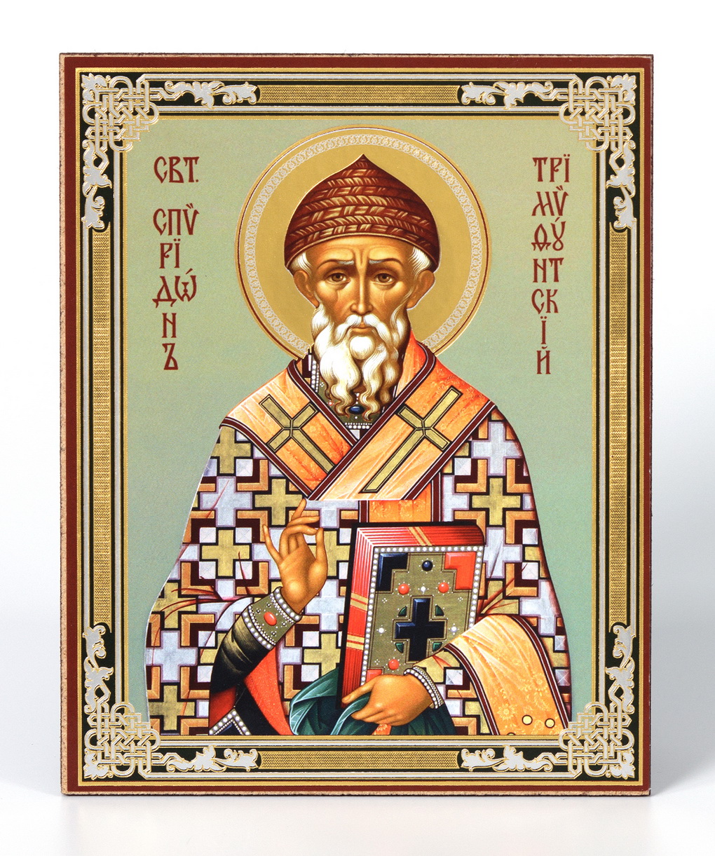 Икона на деревянном планшете 11х13 двойное тиснение Спиридон Тримифунтский 8