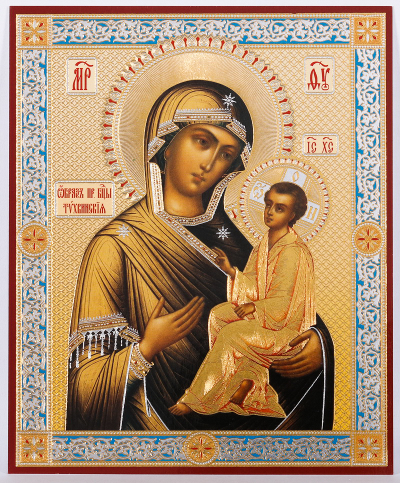 Икона на деревянном планшете 11х13 двойное тиснение Тихвинская БМ 2