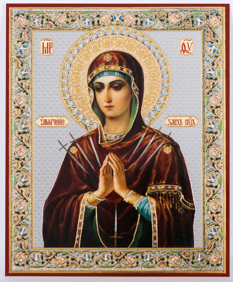 Икона на деревянном планшете 11х13 двойное тиснение Умягчение злых сердец