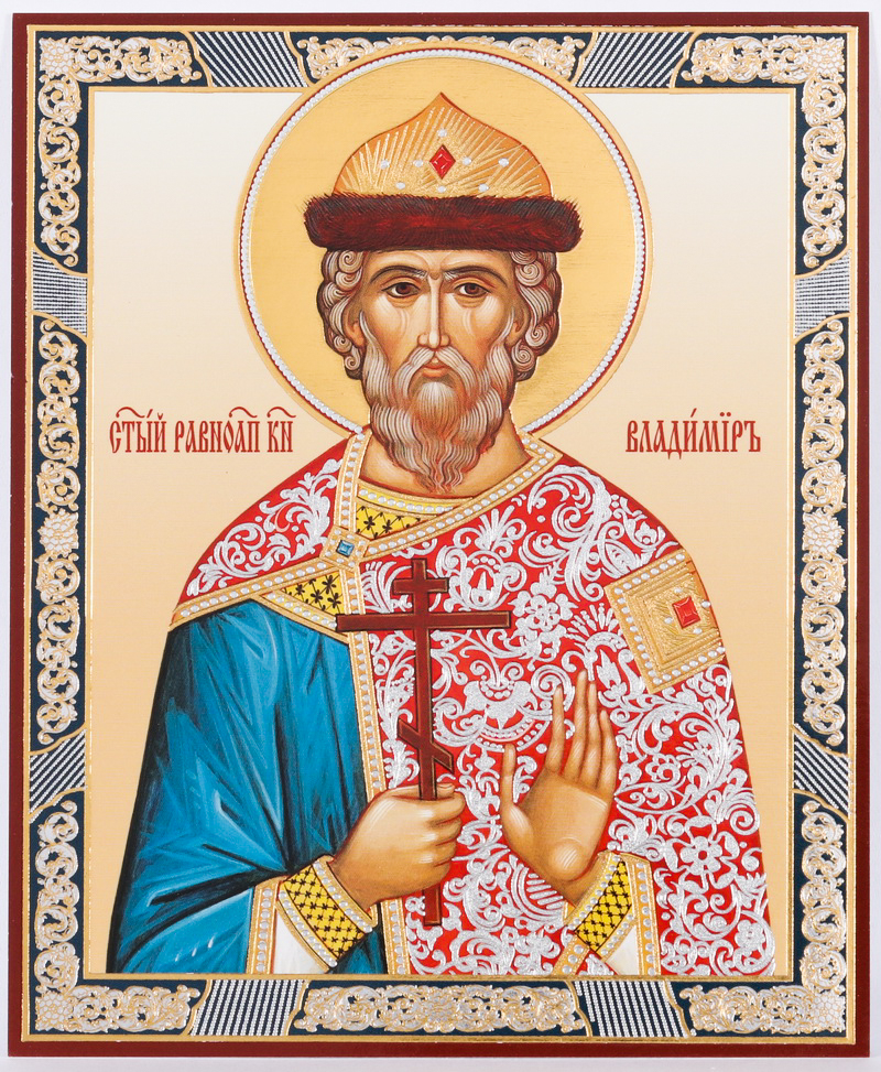 Икона на деревянном планшете 11х13 двойное тиснение Владимир, равн. князь Киевский 4