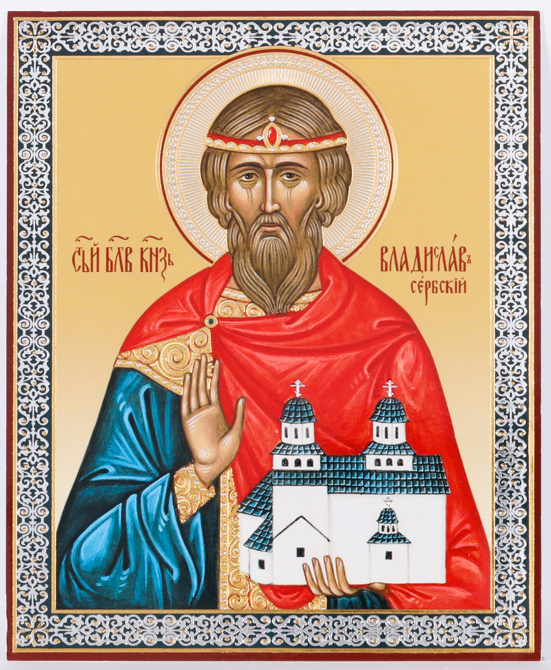 Икона на деревянном планшете 11х13 двойное тиснение Владислав