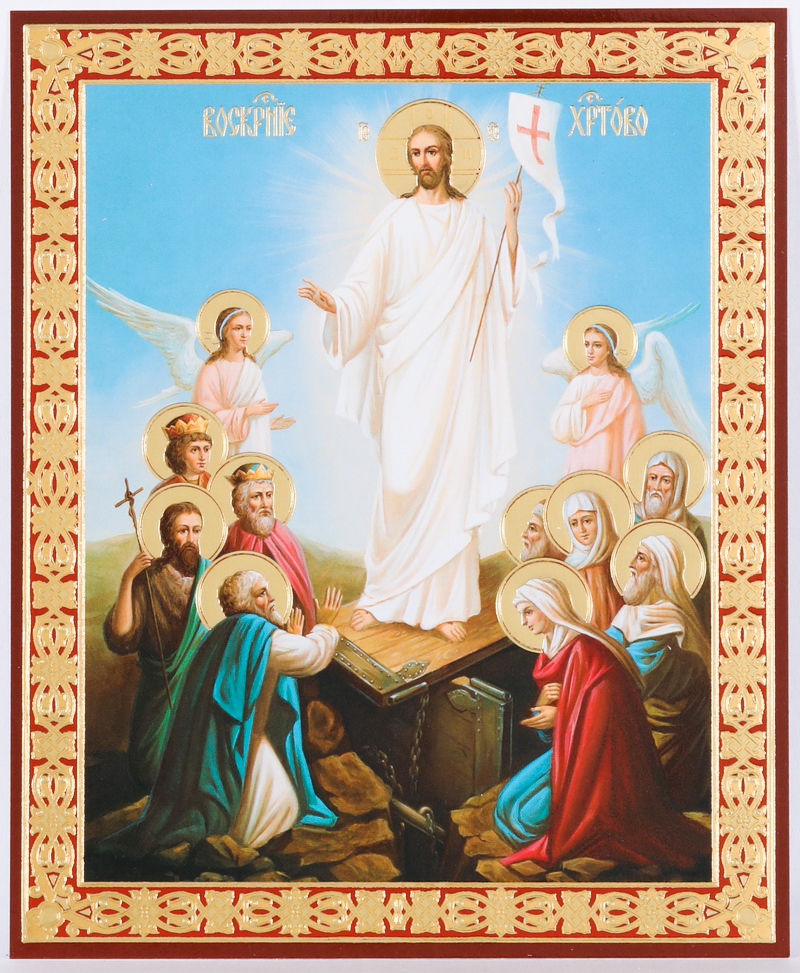 Икона на деревянном планшете 11х13 двойное тиснение Воскресение Христово 24