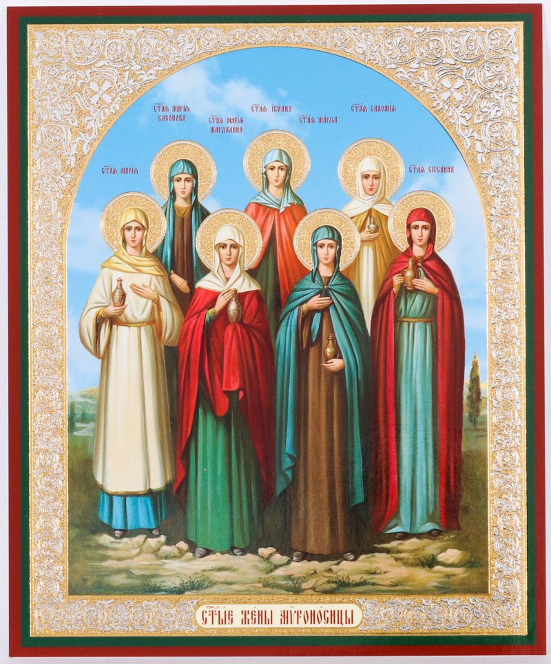 Икона на деревянном планшете 11х13 двойное тиснение Жены Мироносицы