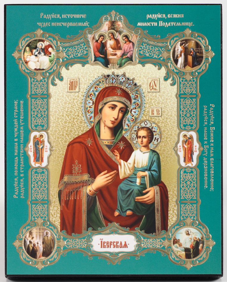 Икона на деревянном планшете 13х18 конгрев, плёнка (18мм) Иверская (с клеймами)
