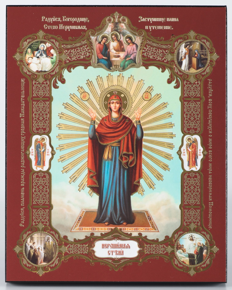 Икона на деревянном планшете 13х18 конгрев, плёнка (18мм) Нерушимая Стена (с клеймами)