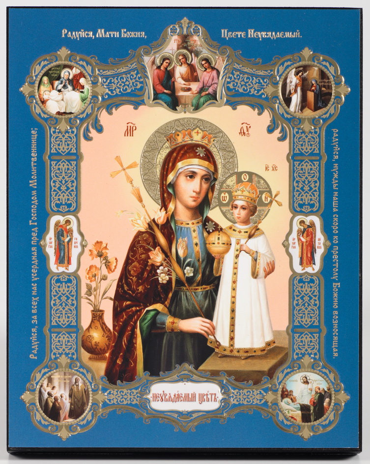 Икона на деревянном планшете 13х18 конгрев, плёнка (18мм) Неувядаемый цвет (с клеймами)